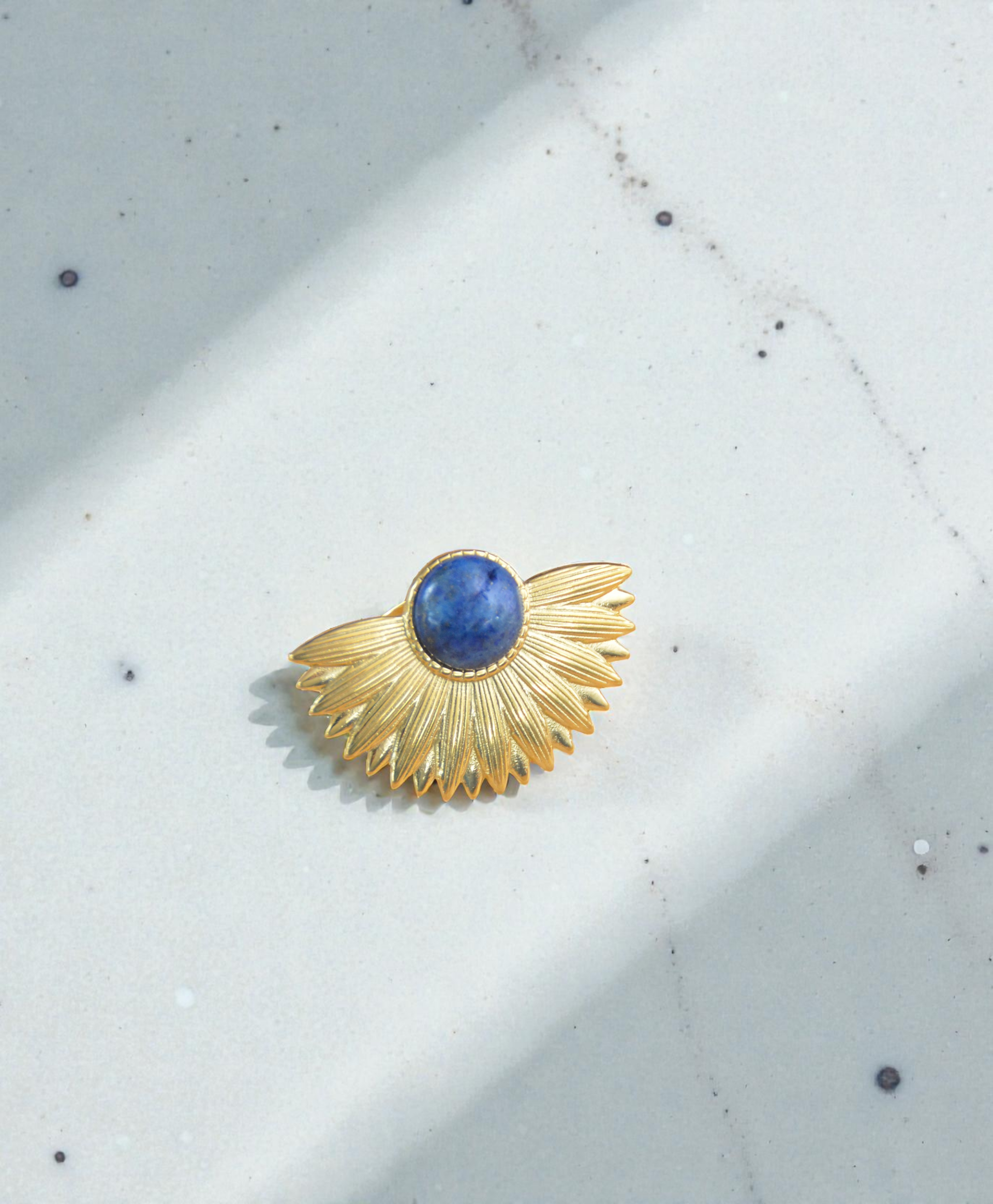 Matériaux : Laiton doré à l’or fin, pierre naturelle bleue (lapis lazuli ou sodalite)