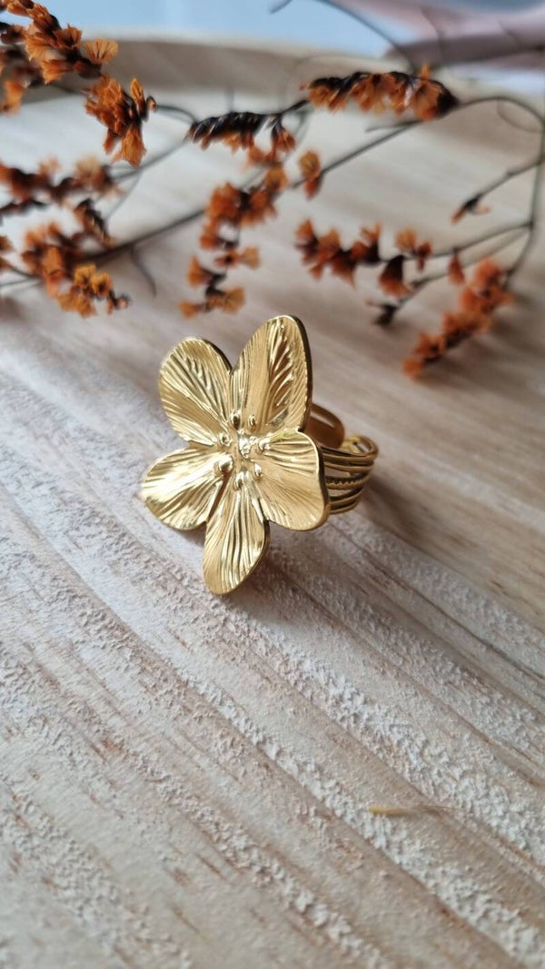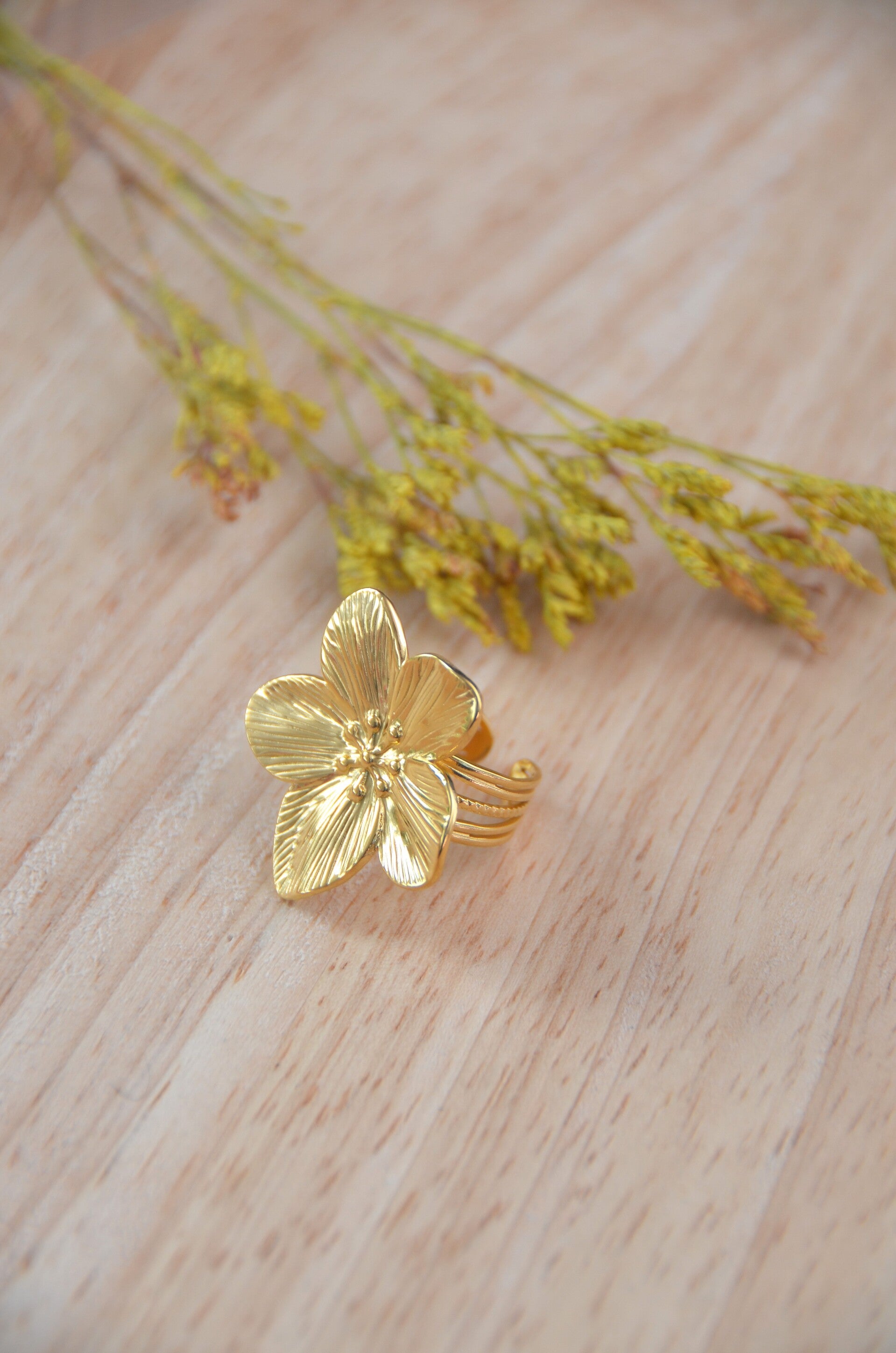 Délicate et rayonnante, la bague Althéa célèbre la beauté intemporelle de la nature en pleine éclosion. Chaque pétale doré semble capturer un éclat de lumière, comme une fleur figée dans l’or au cœur d’un matin éternel.